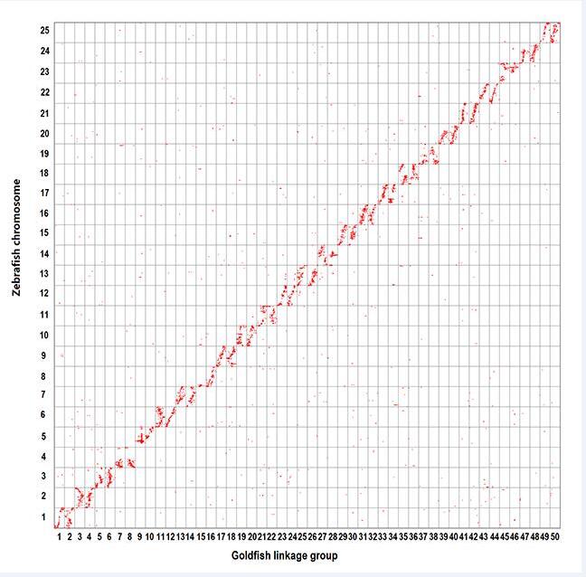 该研究进行了鲤、鲫、草鱼、斑马鱼和青鳉等5种鱼的比较基因组研究,证实鲫基因组经历了第4轮全基因组复制事件。比较分析结果显示鲤、鲫、草鱼和斑马鱼这4个鲤科鱼类中存在较大的共线性块,但也存在许多染色体重排现象,表明鲤科鱼祖先基因组在物种分化分别经历不同的染色体间重排事件和加倍时间。鲫的高密度连锁图谱为经济性状的精细定位和遗传解析提供了有效的工具。该研究通过对体长和体重性状的QTL分析,定位了体长、体重生长密切相关的候选基因集,为鲫未来的性状解析和分子育种提供了指导位点。