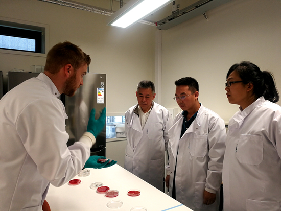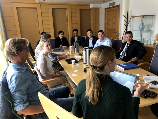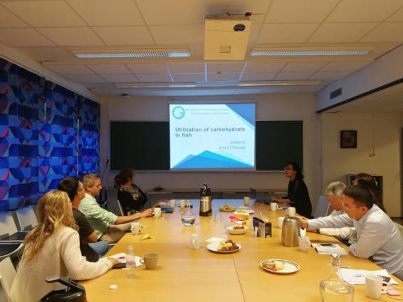 在挪威生命科学大学水产病害与营养系系主任?shild Krogdahl教授和副主任Trond Kortner教授的陪同下,挪威生命科学大学生命科学学院动物与水产科学系Jon ?vrum Hansen教授、Egil Prestl?kken教授和Sigbj?rn Lien教授分别介绍了各自研究团队围绕微生物、酵母、木头等新型蛋白的开发及其在水产养殖中的利用,饲料饼粕原料加工技术及高油脂饲料添加技术,基因编辑技术及其在水产养殖病害、鱼类肉质改良生产中的应用等方面开展的研究进展情况。