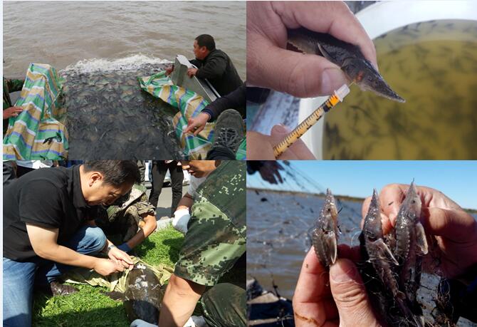 课题组采用人工增殖技术对珍稀濒危鱼类种群资源进行恢复或重建,有效减缓了自然种群资源的下降趋势。近年已在佳木斯、同江等松花江水域共计实施人工放归施氏鲟9万尾、达氏鳇3万尾,并采用VIE、超声波等标记方法进行放流效果评估监测。标记识别回捕鱼类及统计分析显示,人工放流鱼类摄食良好、生长迅速,示范区内鲟鳇鱼种群数量恢复达到10%以上。