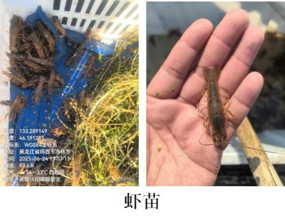 为确保试验成效,6月24日,黑龙江所再次响应虎林市工信局技术需求,指派孙志鹏赴阿北乡开展专项技术服务。此次服务中,黑龙江所不仅提供了经筛选培育的优质小龙虾苗种3500尾(平均体重2.5g),孙志鹏还围绕小龙虾日常投喂管理、寒地病害防控等核心技术要点,为养殖户开展“手把手”现场教学,确保黑龙江所研发的技术规范精准落地。