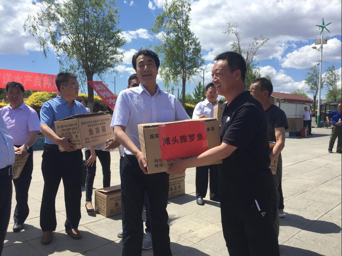 为贯彻落实中央精准扶贫、精准脱贫工作部署,通过支持当地渔业产业结构升级,助力内蒙古乌兰察布市扶贫工作向纵深发展,实现快速脱贫目标。6月14日,黑龙江所按照与乌兰察布市水产总站签订的《战略科技合作协议》,组织国家大宗淡水鱼产业技术体系黑龙江所鲤营养需求与饲料岗位在内蒙古乌兰察布市开展渔业科技扶贫增送苗种活动,向乌兰察布市察右前旗、商都县及兴和县三个贫困旗县水产养殖户赠送滩头雅罗鱼、福瑞鲤、长丰鲢、鳙鱼等苗种共计100万尾。黑龙江所、内蒙古自治区农牧业厅、呼和浩特综合试验站、乌兰察布市农牧局以及水产总站等领导参加了赠送仪式。