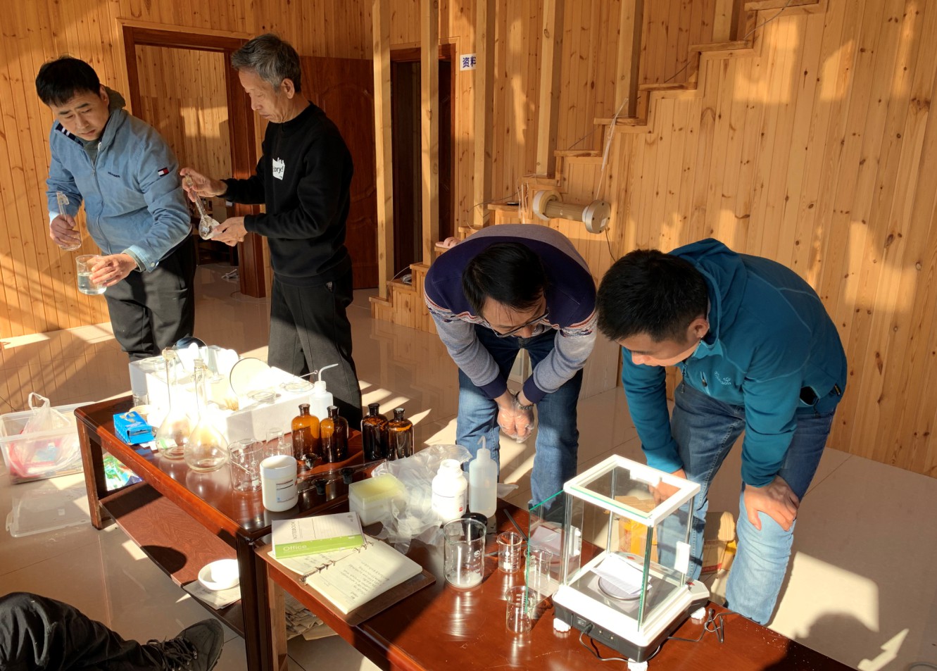 黑龙江所鲑鳟鱼育种创新团队徐革锋研究员在鲑鱼人工精浆配置和紫外线遗传物质失活方面做了现场指导与操作演示,谷伟副研究员针对压力设备使用与实际操作进行了现场指导,极大提升了北京市水生野生动物救治中心鲑鳟鱼创新团队在鲑鳟鱼单性制种方面的技术能力。