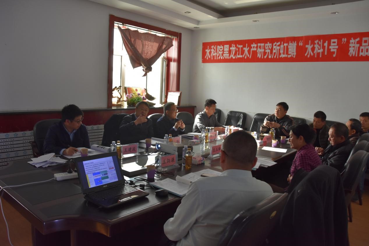 由浙江省淡水水产研究所、中国海洋大学、山东省海洋生物研究院、全国水产技术推广总站的专家组成的审查专家组听取了王炳谦研究员关于虹鳟“水科1号”的工作汇报,并通过观测各群体的生长情况,随机抽样以及审查育种档案等方式对虹鳟“水科1号”进行了现场审查。
