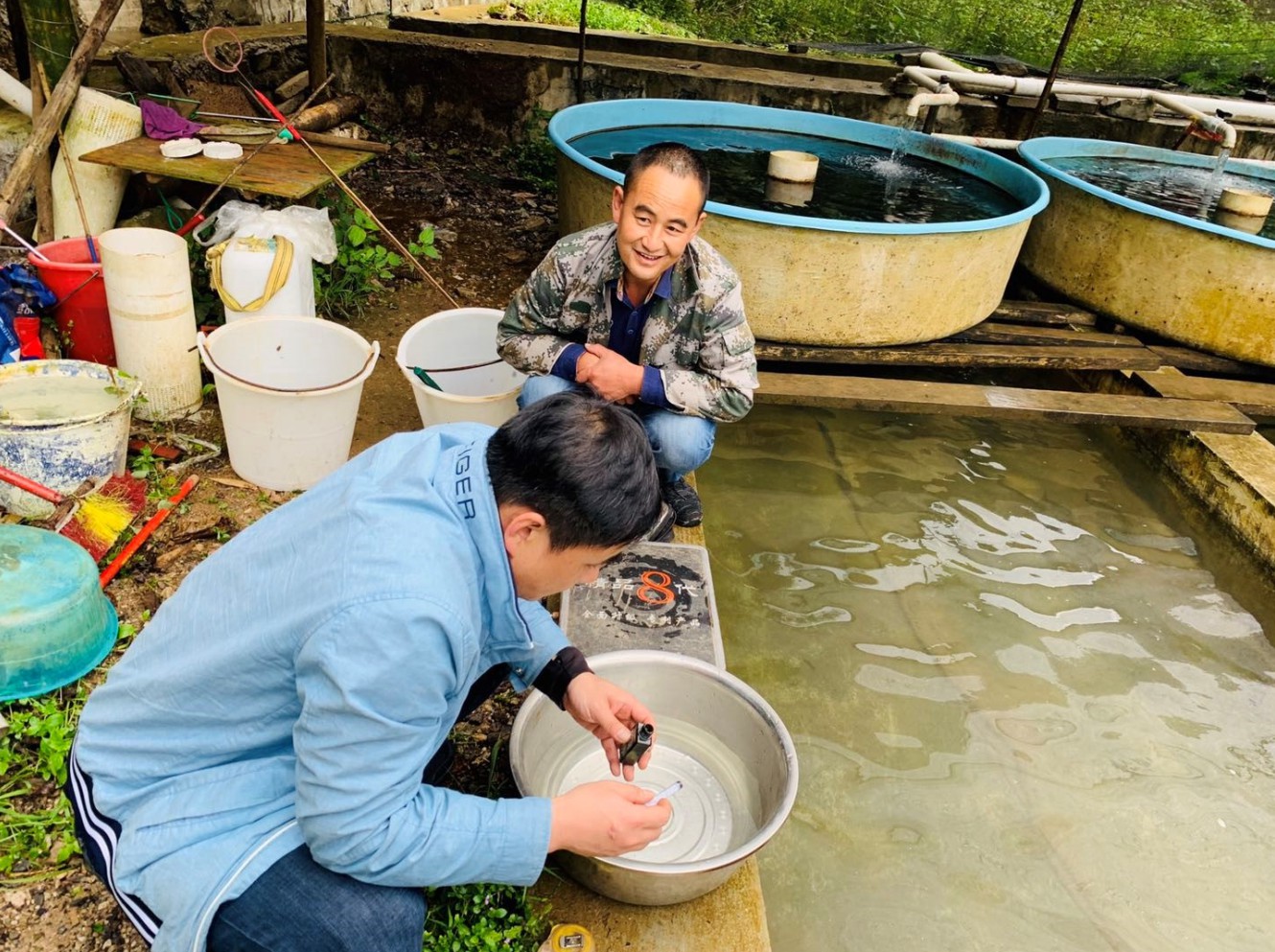 近日,以徐革锋研究员、谷伟副研究员和吴文化副研究员为代表的黑龙江水产研究所鲑鳟鱼育种创新团队技术指导小组,前往勐戛镇勐戛村大龙洞冷水鱼养殖基地与基地负责人先军强进行技术交流,就企业渔业生产过程中存在的问题进行诊断并提出合理改进建议。