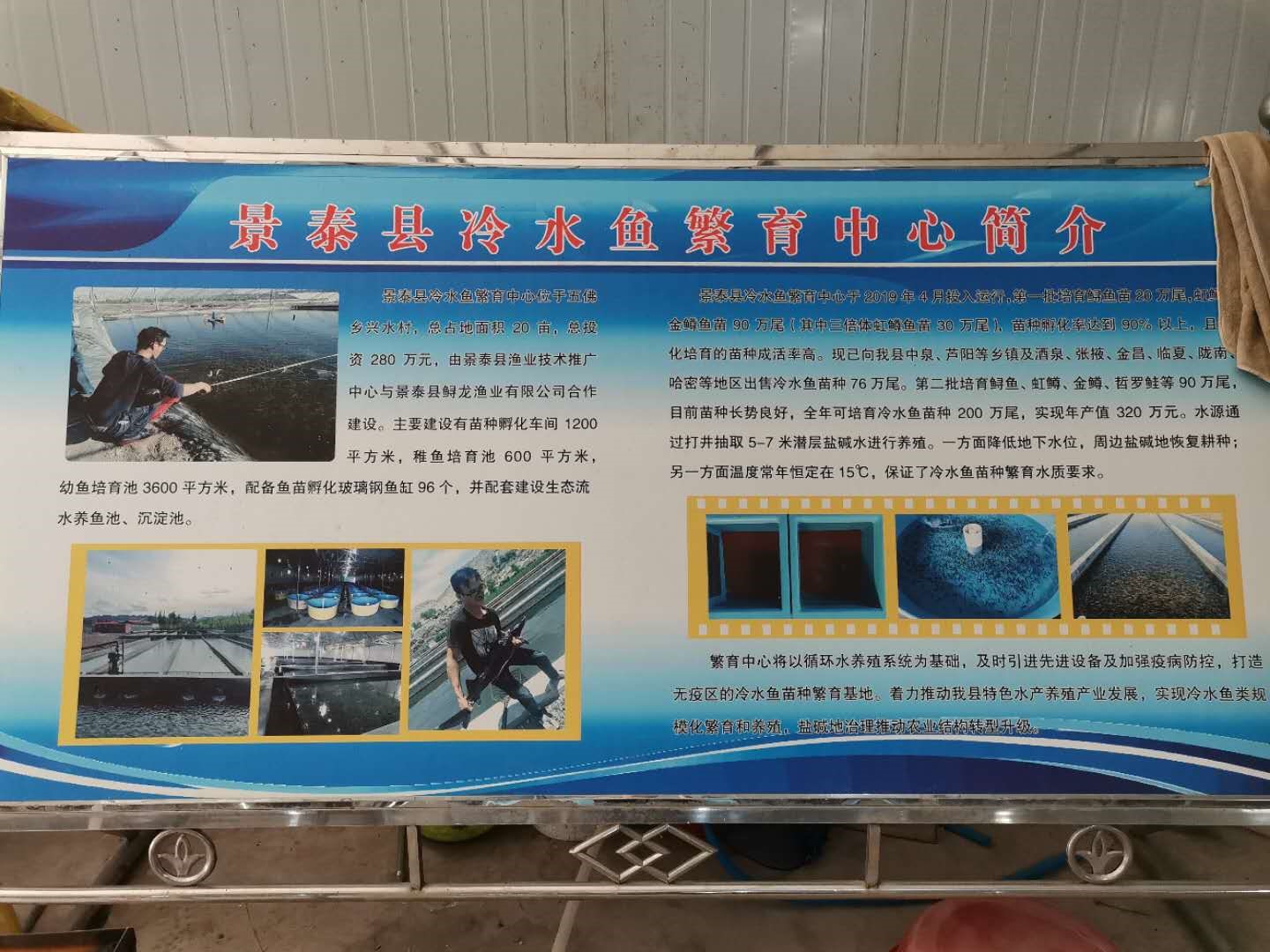 景泰县冷水鱼繁育中心是在该县“始终坚持脱贫攻坚一号工程不动摇,致力提收入、护生态,促发展,全力以赴破解土地盐碱化难题”的背景下建成的,该中心虹鳟鱼等冷水性鱼类的养殖成功,对于景泰县盐碱水的利用及精准扶贫工作有着很大的促进作用。