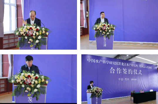 林祥明代表中国水科院向黑龙江所与塔河县达成共建我国最北冷水鱼试验基地协议表示祝贺。他表示,依托黑龙江所技术人才优势和塔河县地缘条件优势共建“塔河基地”,不仅拓展了黑龙江所科技支撑产业发展的空间、提升塔河县冷水鱼产业发展的科技水平,更为双方未来合作提供了坚实的基础。中国水产科学研究院将以此次所地签约为契机,加强院系统与塔河县的协作与合作,共谋冷水渔业振兴;进一步强化人才和科技支撑,为塔河县特色冷水鱼养殖业健康发展蓄能,期待“塔河基地”为黑龙江省乃至全国的渔业发展贡献力量。