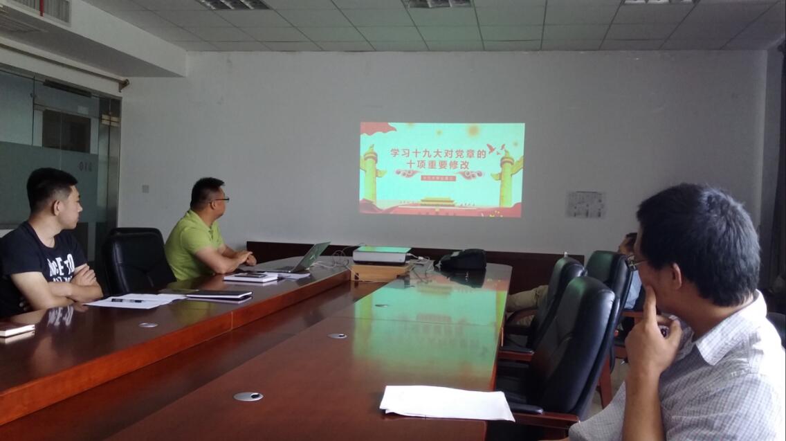 6月11日上午,科研第一党支部组织全体党员干部开展集中政治学习,重点学习了党的十九大新修订《中国共产党章程》的十大修改内容。支部书记郑先虎同志主持学习活动,支部13名党员参加了本次集中学习。