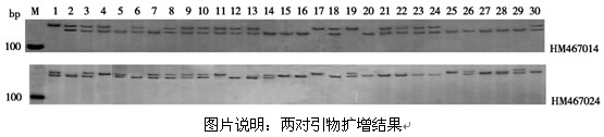 图片说明:两对引物扩增结果